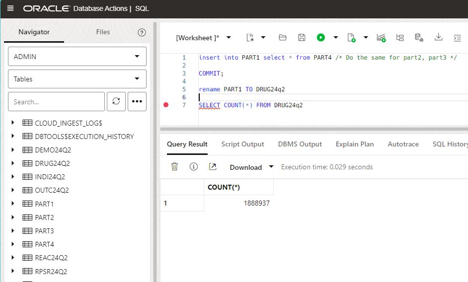 Merge all tables created via sql*load to one table. SQL> insert into PART1 select * from PART4